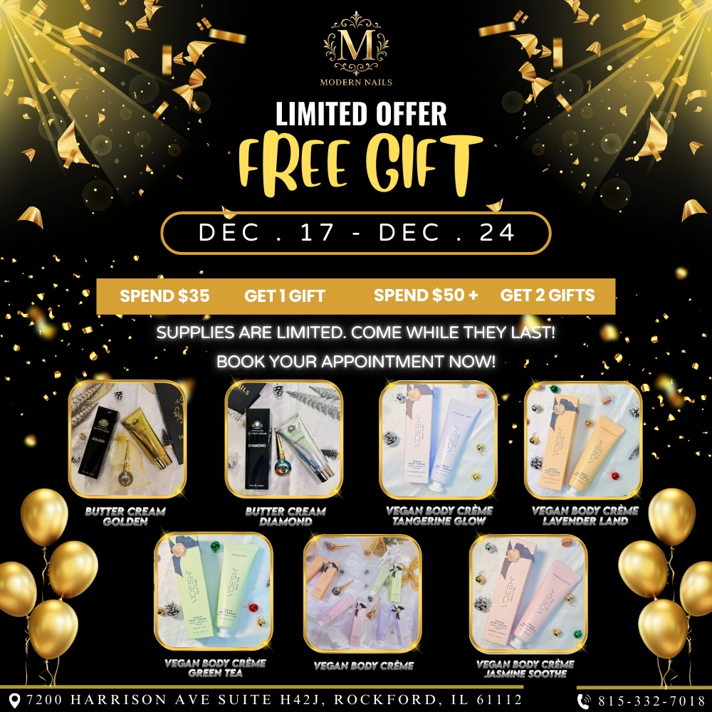 Modern Nails is the premier destination for nail services in the heart of Rockford, IL 61112. Getting your nails done should be an indulgence and Modern Nails understands this. Our goal is to pamper all the ladies with unique manicures and pedicures that will leave your nails looking elegant and makes you feel rejuvenated.